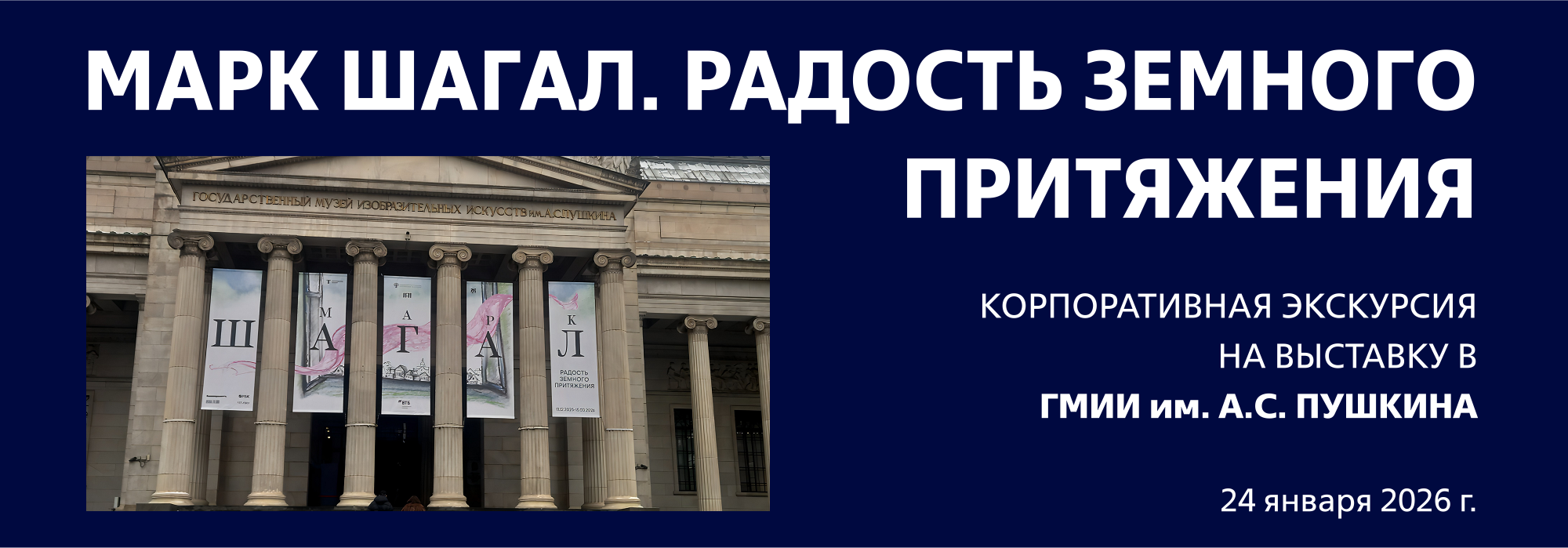 Профком ВТБ организует для членов Профсоюза экскурсию по выставке «Марк Шагал. Радость земного притяжения» в Главном здании Государственного музея изобразительных искусств им. А.С. Пушкина.