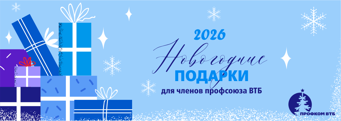 В преддверии Нового года Профком ВТБ традиционно дарит новогодние подарки всем членам Профсоюза и детям членов Профсоюза в возрасте от 2 до 14 лет включительно. Подарки выдаются с 11 декабря.